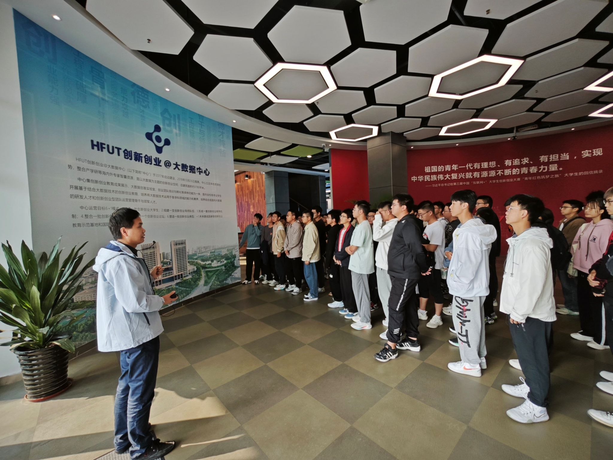 在大数据中心讲解老师的带领下,同学们认真学习了解了合肥工业大学大数据中心基本情况,参观了创新创业教育成果展示大厅。同学们积极参与,学习了诸多创新创业优秀团队的新鲜经验,了解到了诸如“互联网+”、“挑战杯大学生创业大赛”“全国大学生金相技能大赛”等国家级竞赛的实际案例,为同学们接下来参与竞赛、项目,解决复杂学科竞赛问题等提供了思路,有效激发了同学们对创新创业的积极性。