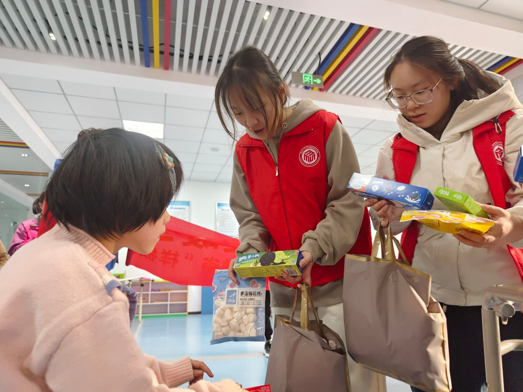 活动前期,志愿者们在党支部内部为孩子们征集了祝福语,准备了帽子、围巾等暖冬物资。活动现场,志愿者们带领孩子们开展了“一日陪伴”活动,通过康复训练、互动游戏、温情陪伴等举措,给孩子们带去了快乐和温暖。志愿者们亲手把一件件暖冬物资和小零食送到孩子们手中,把大哥哥、大姐姐们的祝福寄语传递给孩子们。活动中,志愿者们与康复中心工作人员和孩子家长深入交谈,详细关心询问每一位孩子的生活情况和康复进展,并一起进行了卫生打扫、垃圾清理、浇水拖地等,为孩子们营造温馨和干净整洁的环境。