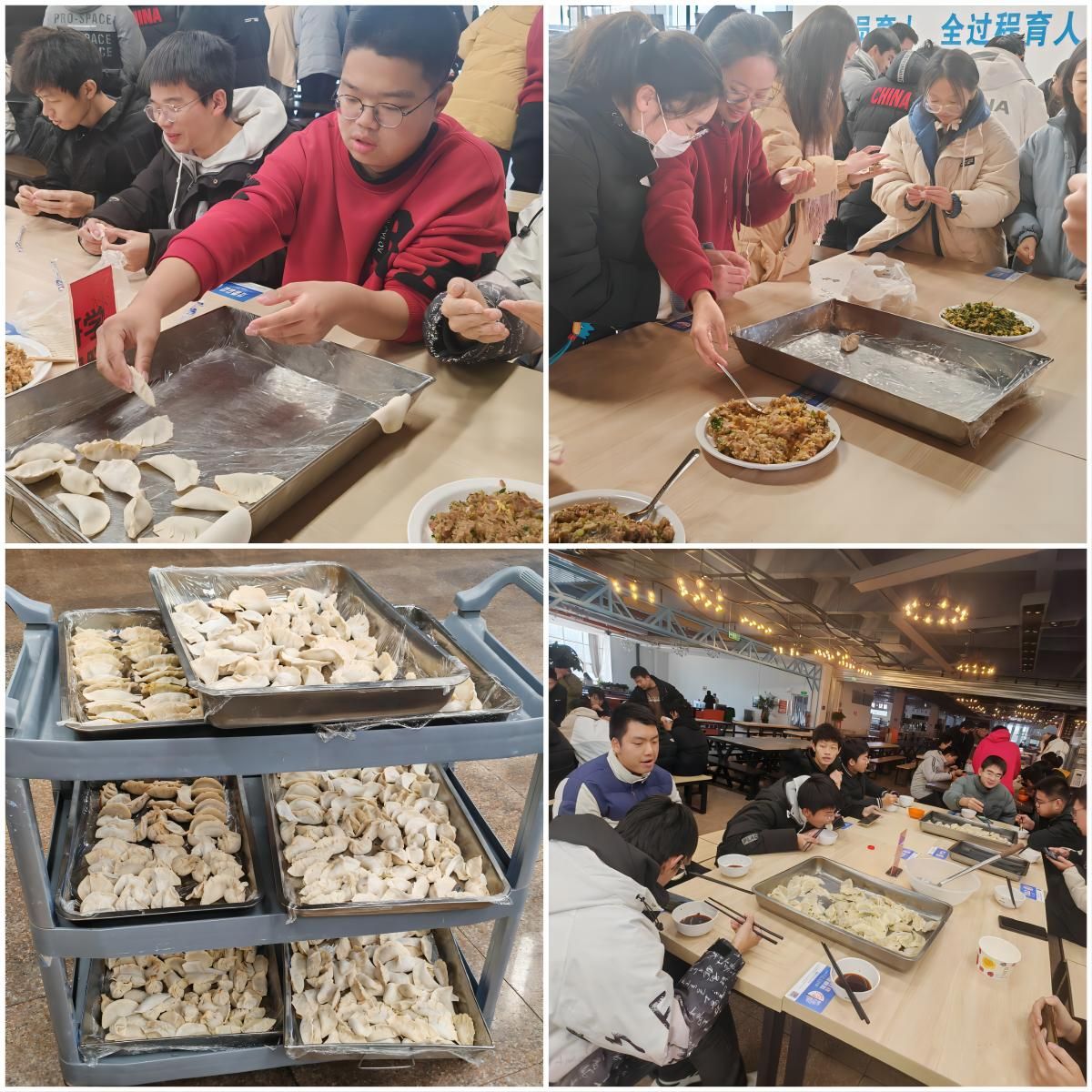为丰富同学们的校园文化生活,增进同学之间的情感交流,营造浓厚的节日氛围,弘扬传统文化,12月22日下午,材料学院组织部分班级于翡翠湖校区二食堂开展“弘扬传统,情暖冬至”冬至包饺子活动,100余学生主动报名参与。