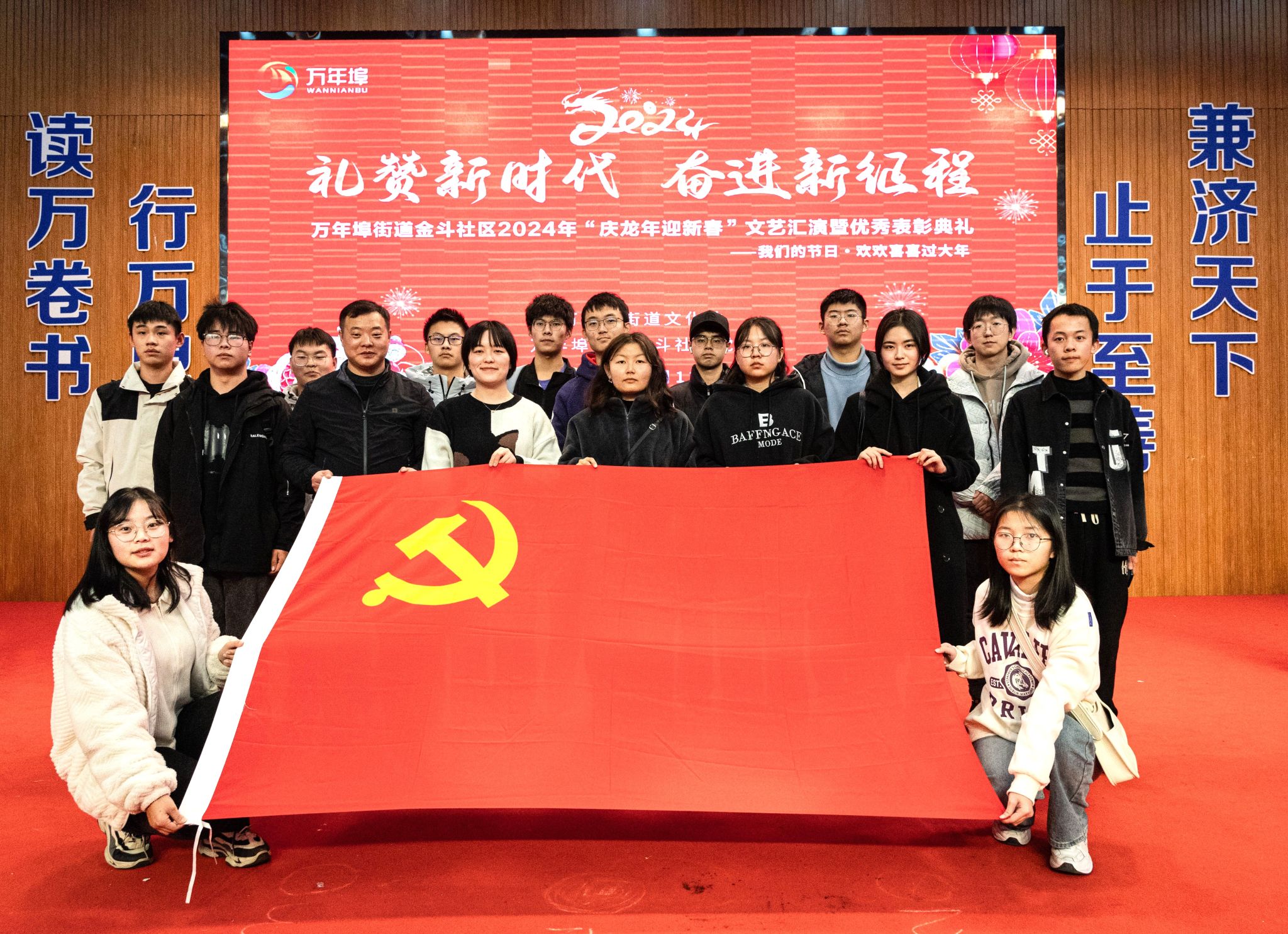 1月13日下午,6686体育本科生第二党支部赴万年埠街道金斗社区参加“礼赞新时代,奋进新征程”迎新春文艺汇演暨优秀表彰典礼。