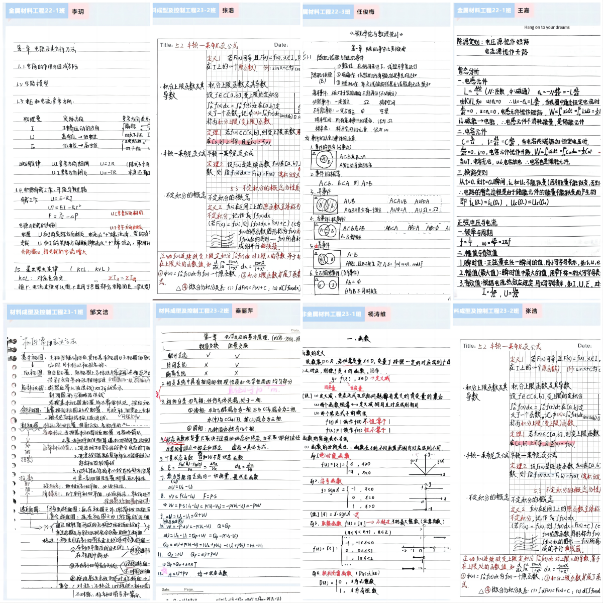 活动自2023年11月启动以来,累计收到150余份笔记作品,科目涵盖了《高等数学》《线性代数》《概率论与数理统计》《大学物理》《工程力学》《电工与电子技术》《材料成型原理》《工程图学》等课程。笔记字迹工整、美观大方、内容充实,既有思路明确重点突出的知识点梳理,又有环环相扣的思维导图,充分展示了我院学子扎实的学习功底和良好的审美情趣。通过最终学院评选,共计30余份优秀笔记作品脱颖而出。作品通过学院微信公众号、学生公寓楼走廊区域进行线上线下展示,营造了良好的追学赶超学习氛围。同学们表示,希望通过这样的评选活动,激发自己的学习热情,培养自主学习能力和创新精神。”