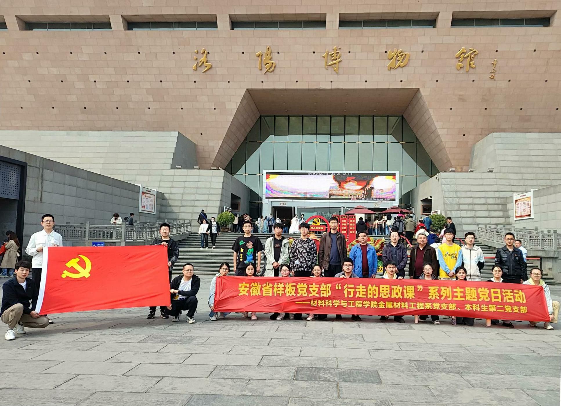 3月22日下午,6686体育赴河南省洛阳博物馆组织开展了“行走的思政课”师生联合主题党日活动。学院安徽省“样板支部”材料学院本科生第二党支部和金属材料工程系党支部师生党员代表20余人参加本次活动。