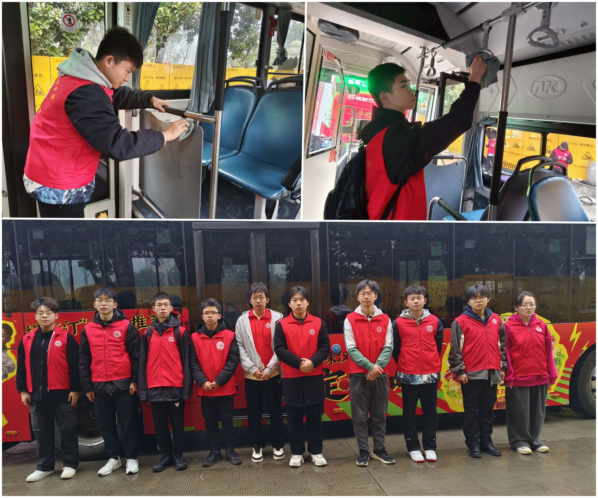 本次活动伴随着温暖的晨辉顺利开展。志愿者们自带抹布和拖把,平均分为两组轮流进行志愿服务活动,每一辆公交车都由一组成员负责清洗。同学们积极配合,分工合作,在公交车内帮助司机细心擦拭座椅扶手,拖地及清理地上的垃圾,努力清洗每一辆公交车。活动过程中,志愿者们充满朝气与热情,兢兢业业,积极地参与清洗公交的工作,团队之间配合的有条不紊,十分默契,体现了团结,友爱的志愿服务精神,同时也向社区传递大学生的关怀和帮助。活动中公交车司机们表达了对志愿者们的感谢,同学们也表示收获了快乐和成就感,活动也在同学们收拾好清洗工具,整理好活动材料后结束。大家纷纷表示,希望通过这样的活动,能够激励更多的人加入到志愿服务队伍中,为城市的文明建设贡献自己的一份力量。