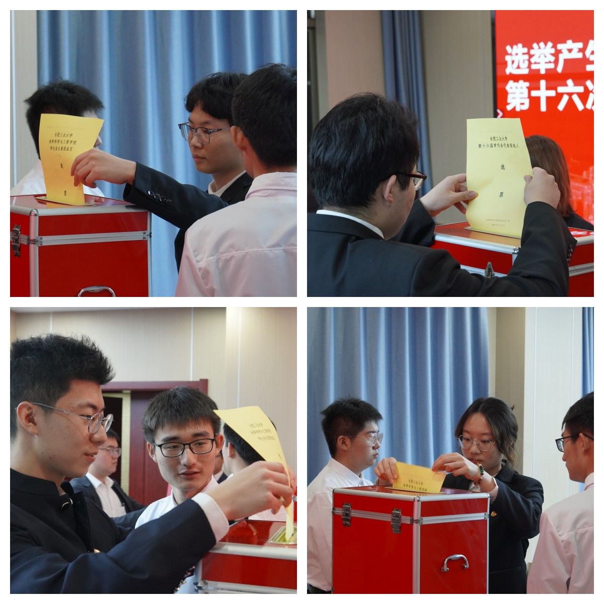 2021级辅导员刘苏婷介绍了新一届学生会和研究生会主席团成员的基本情况。2023级辅导员葛海涛和2022级刘琬菁分别介绍了出席合肥工业大学第十六次学生代表大会暨第六次研究生代表大会各位代表候选人的基本情况。随后学院全体学生代表和研究生代表分别投票选举了新一届学生会主席团成员和研究生会主席团成员。大会一并选举产生了出席合肥工业大学第十六次学生代表大会和暨第六次研究生代表大会学院的11名本科生代表和6名研究生代表,由学院学工办副主任兼团委副书记马贤峰老师宣读选举结果。
