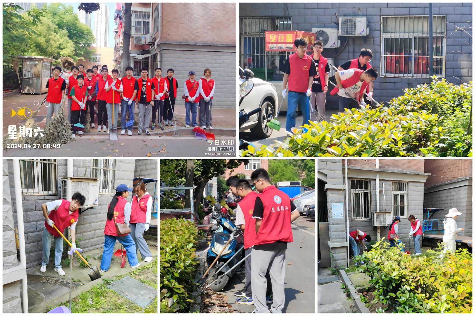 3月 30日上午,大地回春,正是劳动的好季节,为了给居民打造一个环境优美、生活舒适的居住环境,合肥翠庭园社区新时代文明实站、香榭水都小区党总支、业委会与材料学院粉体 23-1 班携手举办了“清洁家园,我在行动”志愿服务活动,打造舒适居住环境,清洁社区楼道卫生。