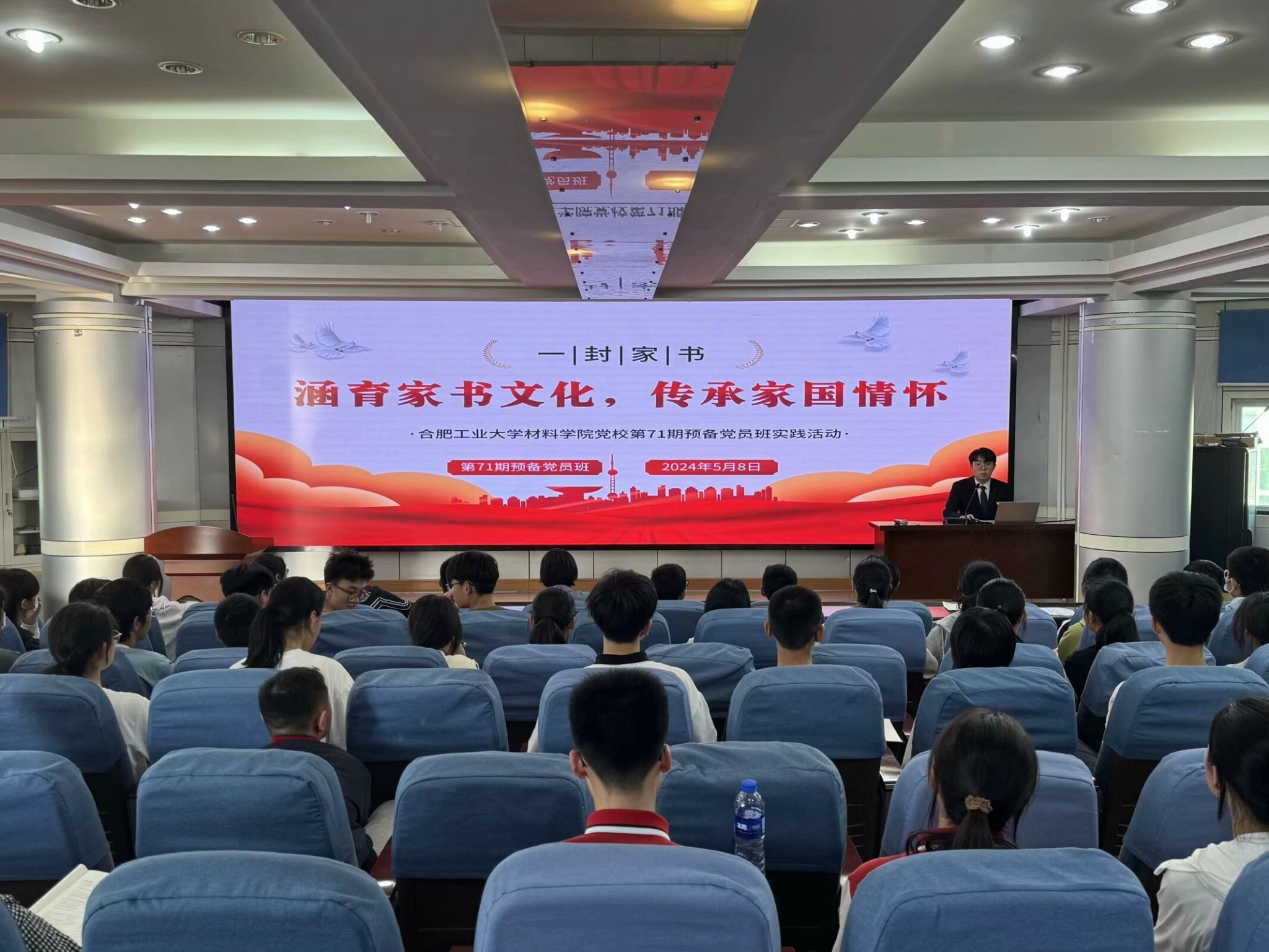 为引领广大青年铭记党的光辉历程,坚定理想信念,激发爱国情怀,5月8日下午,材料学院分党校第71期预备党员班赴合肥工业大学附属中学开展“涵育家书文化,传承家国情怀”主题实践活动。