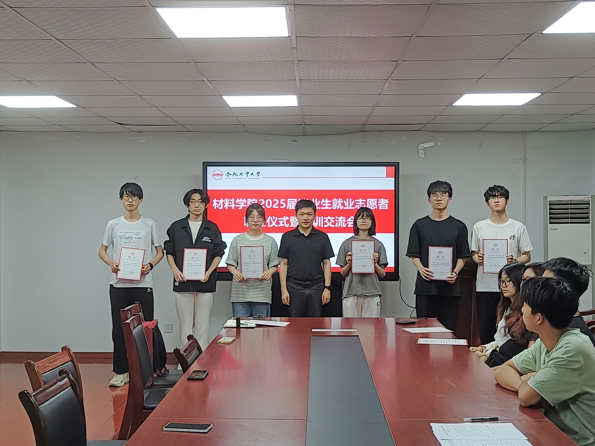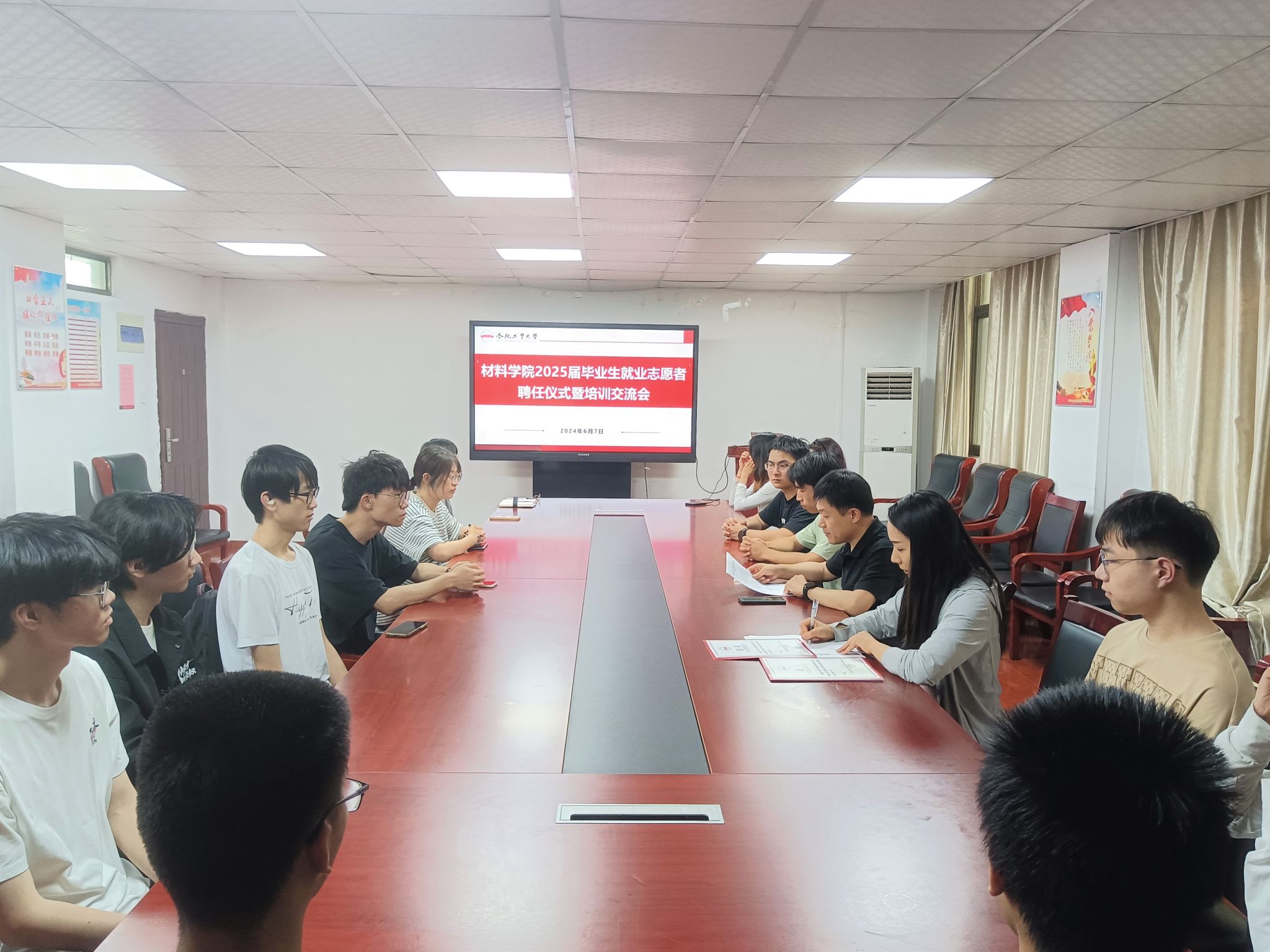 6月7日下午,6686体育在材料楼党员之家举办2025届毕业生就业志愿者聘任仪式暨培训交流会。学院相关负责人、2025届毕业班辅导员和全体就业志愿者参会。