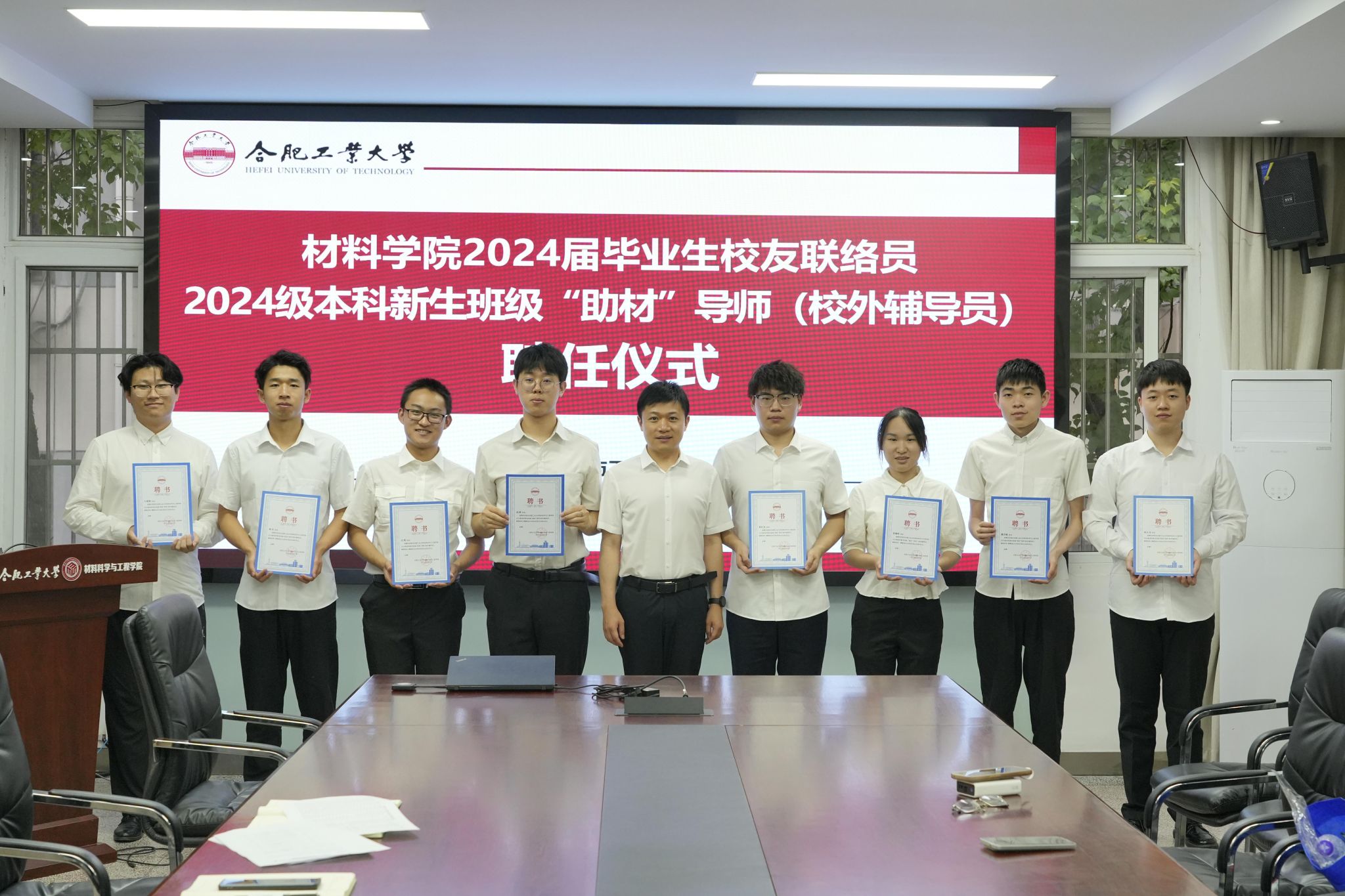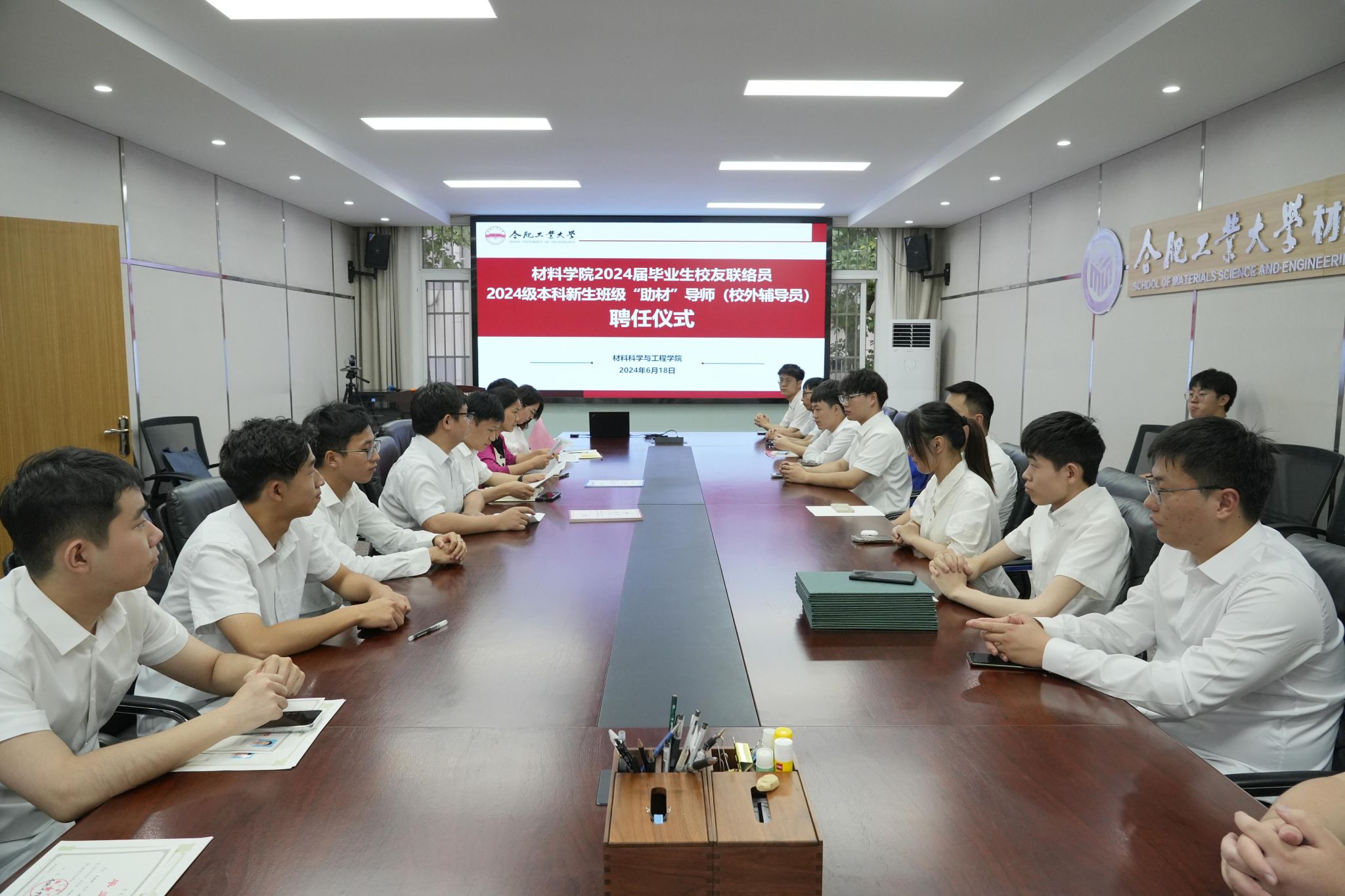 6月18日下午,6686体育在屯溪路校区小红楼210举办2024届毕业生校友联络员及“助材”导师聘任仪式。学院相关负责人、毕业班辅导员、全体新聘校友联络员、“助材”导师参加本次活动。