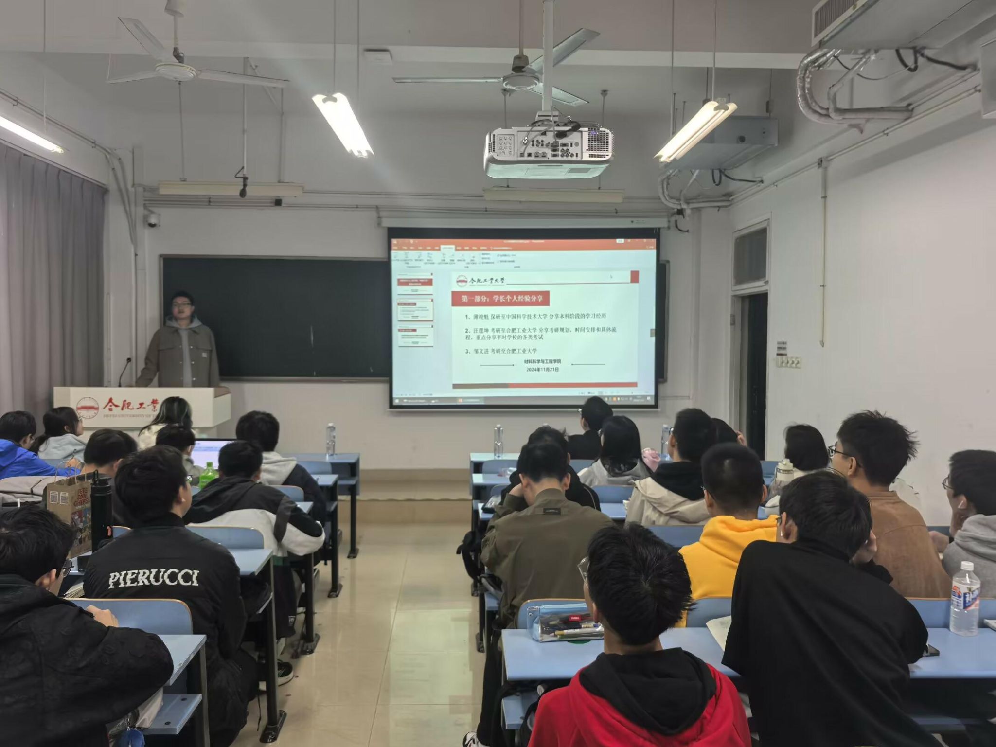 11月21日晚,6686体育在翡翠湖校区八教206举办了“材优干济”朋辈交流沙龙。学院材料物理24-1班班主任、优秀学生代表和2024级材料物理专业全体同学参加本次活动。