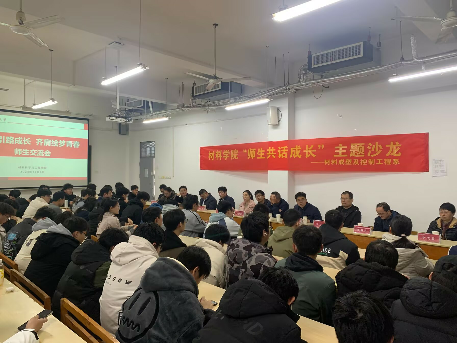12月4日下午,6686体育在翡翠湖校区翠三教409举办“师生共话成长”主题交流沙龙。学院材料成型及控制工程系教师代表、材料成型及控制工程专业2024级全体同学参加本次沙龙。
