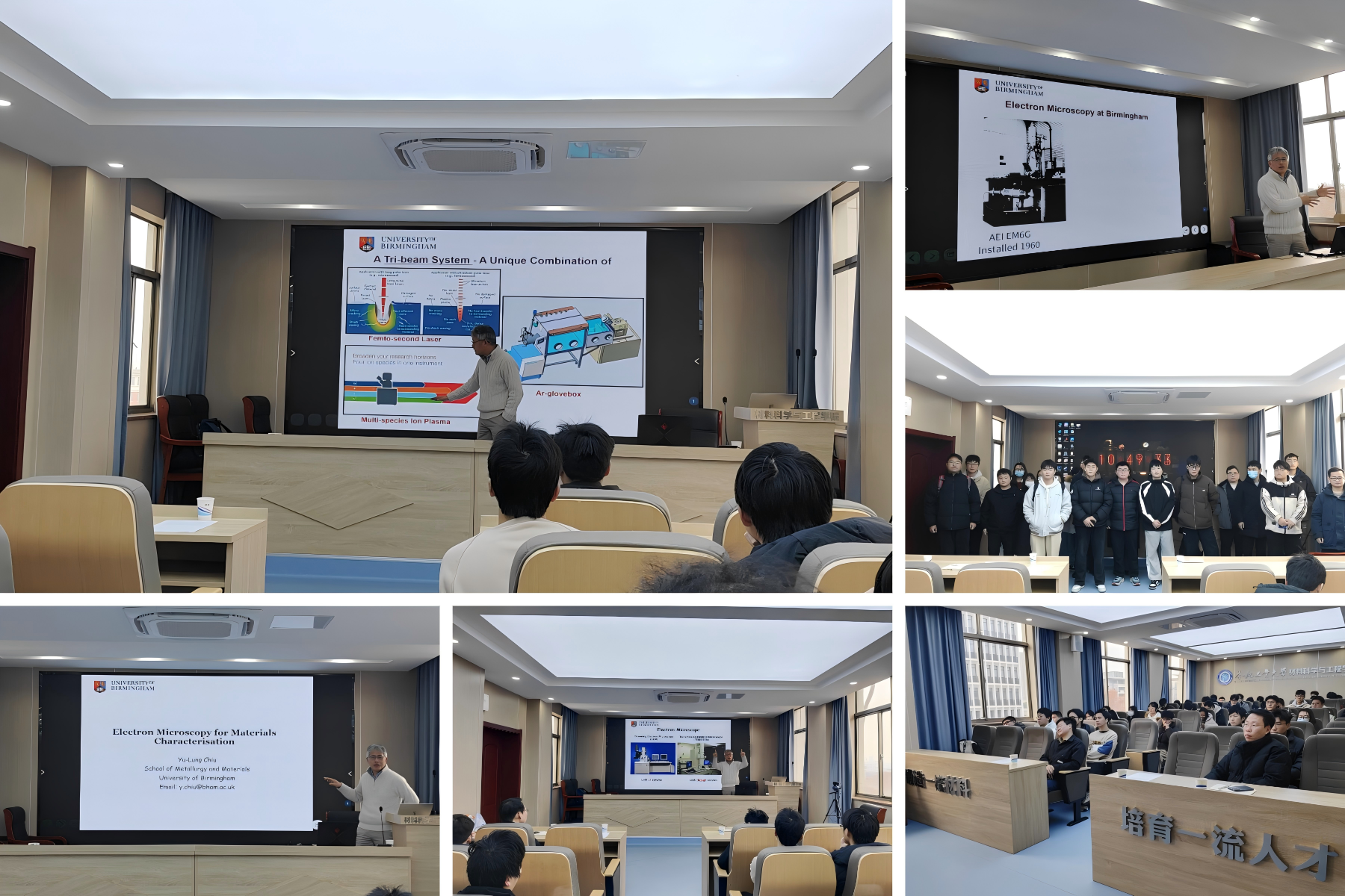 材料学院于20241225日(星期三)上午,在材料楼601会议室举办了一场主题为“Electron Microscopy for Materials Characterization”的学术讲座。本次讲座特邀英国伯明翰大学Prof. Chiu Yu-Lung(赵裕隆教授)作为主讲嘉宾,旨在帮助研究生深入了解学科前沿,拓展学术视野,并培养其科研能力及创新思维。活动吸引了来自材料学院的六十余名研究生参加。