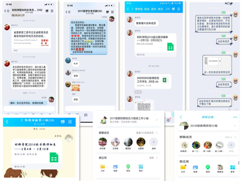 本科生第二党支部金属材料工程16-2班刘天庆同学这样说:“学生党员应听从指挥,做顾全大局的“护航员”;主动作为,做科学防控的“宣传员”;敢于担当,做疫情防控的“战斗员”。通过微博空间、微信朋友圈、微信群、QQ群等网络渠道转发各级党委、政府的有关决策部署和卫生健康等主管部门发布的与抗击疫情有关的信息,引导身边亲友正确认识和对待疫情,积极传播正能量。”