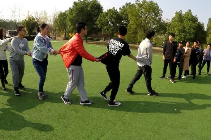 活动开始,来自心晴社拓展部和调研部的各位干事们分为四个小组,干事们以破冰游戏营造氛围,之后就是各小组展现团队默契的驿站传音游戏。然后,四组队员还在培养队伍协调能力的扯龙尾和考察个人综合素质的的撕名牌大战中,进行了紧张激烈的对抗。笑声,汗水溢满操场,不知不觉,干事们在温暖明媚的阳光中完成了活动。