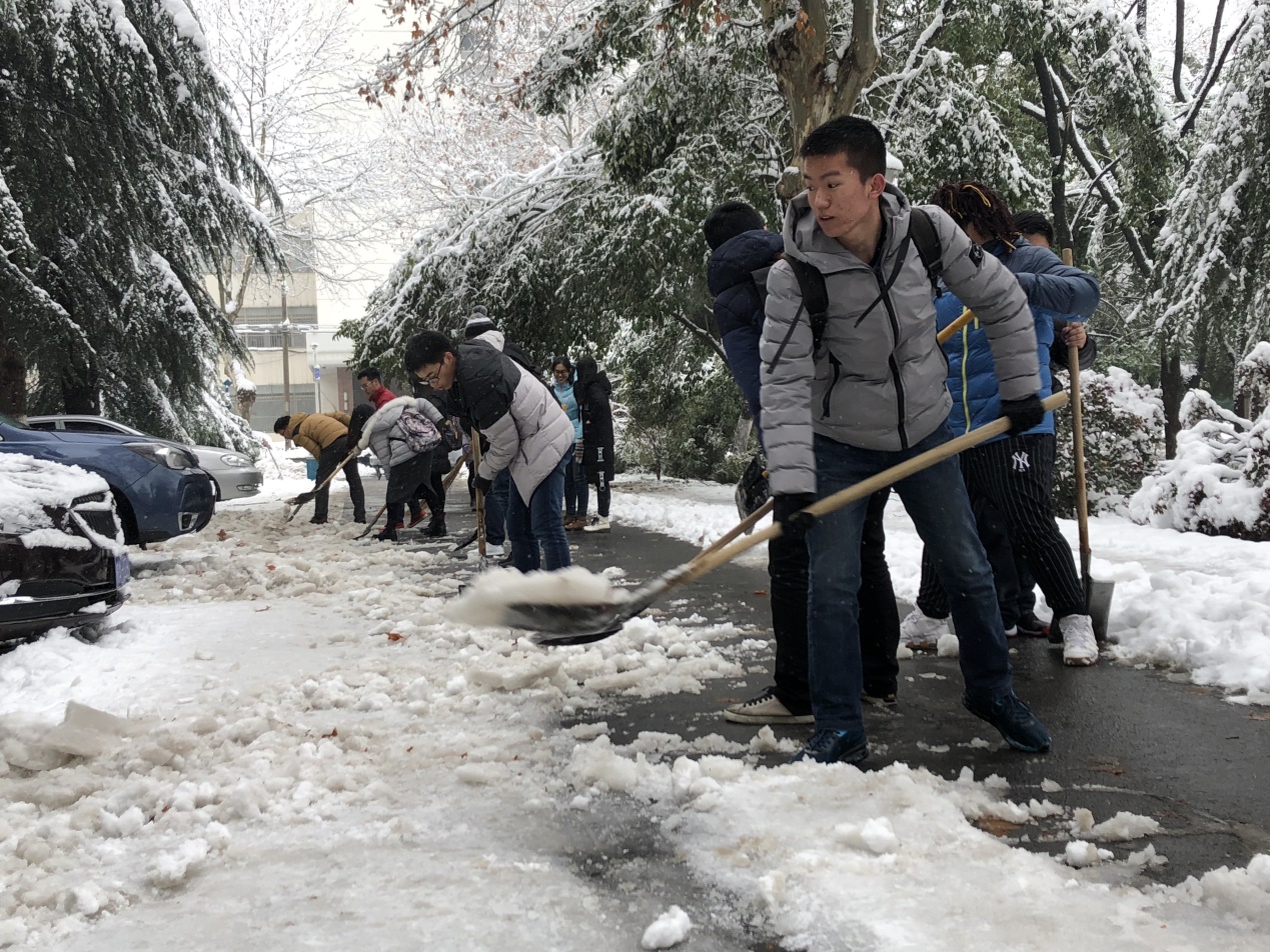 新年伊始,合肥迎来强降雪,工大校园内积雪深厚,严重影响师生出行。雪后第二天,材料学院2015级本科生党支部的学生组成志愿小分队,从行政楼借来工具,火速加入到除雪队伍中去。所有学生分成两组,分别从至善路的两端开始除雪,将路中间的雪堆积到道路两旁,并将停车位前的积雪堆到不妨碍车辆进出的位置。辅导员周矗老师身先士卒,同学生一起劳动,在冰冷的雪地里,同学们丝毫没有怠慢的情绪。经过一个半小时的努力,至善路已经可以正常通车行走。