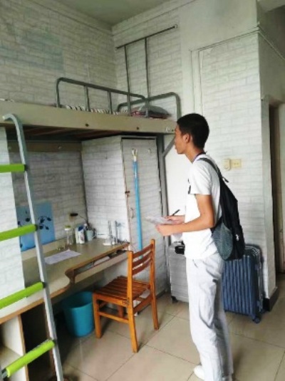 本次检查以学校卫生检查通知中的评分细则为标准,从阳台是否有杂物堆积、卫生间是否整洁清新、书桌物品是否摆放整齐等方面进行查看和评分,并针对私拉电线、使用违规电器、饲养宠物等寝室安全方面的问题进行了重点排查。