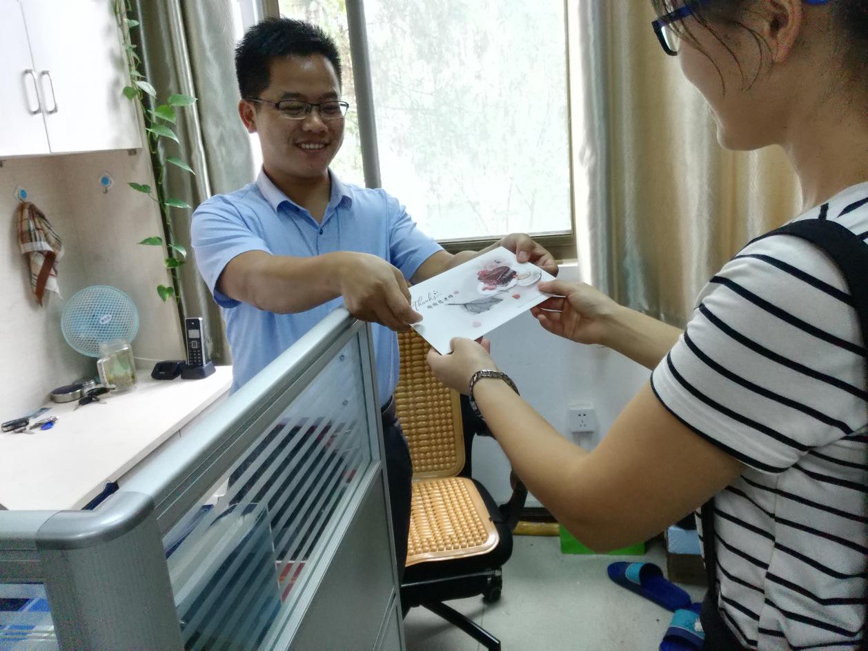 教师节前夕,为了表达同学们对老师的祝福之情、感恩之意,进一步加深师生之间的感情,我院研会的同学们认真写好贺卡,一一给老师送去并表示祝福。老师们在收到贺卡后,脸上流露出喜悦与欣慰。在本次活动中,新同学感受到了教师默默耕耘,无私奉献的精神,并向老师表达了对于他们的敬意,感谢老师的辛勤工作,并通过实际行动表达对老师的敬意,让整个材料学院洋溢着欢喜的气氛。