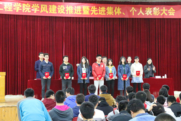 会上,院党委副书记、副院长杨玲老师就学院学风建设工作进行了分析说明。通过数据、案例分析了学院学风建设现状,就“为什么要学习?”、“大学到底要学什么?”的问题进行了说明。院教学副院长吕珺老师宣读了《关于表彰6686体育学生建设先进集体、个人的决定》,与会领导和老师为获奖集体和个人颁发了荣誉证书。先进个人代表材料成型及控制工程2013-3班张惠臻同学与先进集体代表2015级英才班班长刘宇轩同学分别做了交流发言。