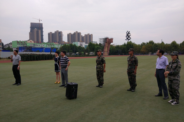 9月5日下午4时,6686体育党委书记程继贵老师、院长张久兴老师、党委副书记杨玲老师和副院长徐经忠老师一行到达材料学院2016级新生军事训练场地东操场,看望参与训练的教官和新生。