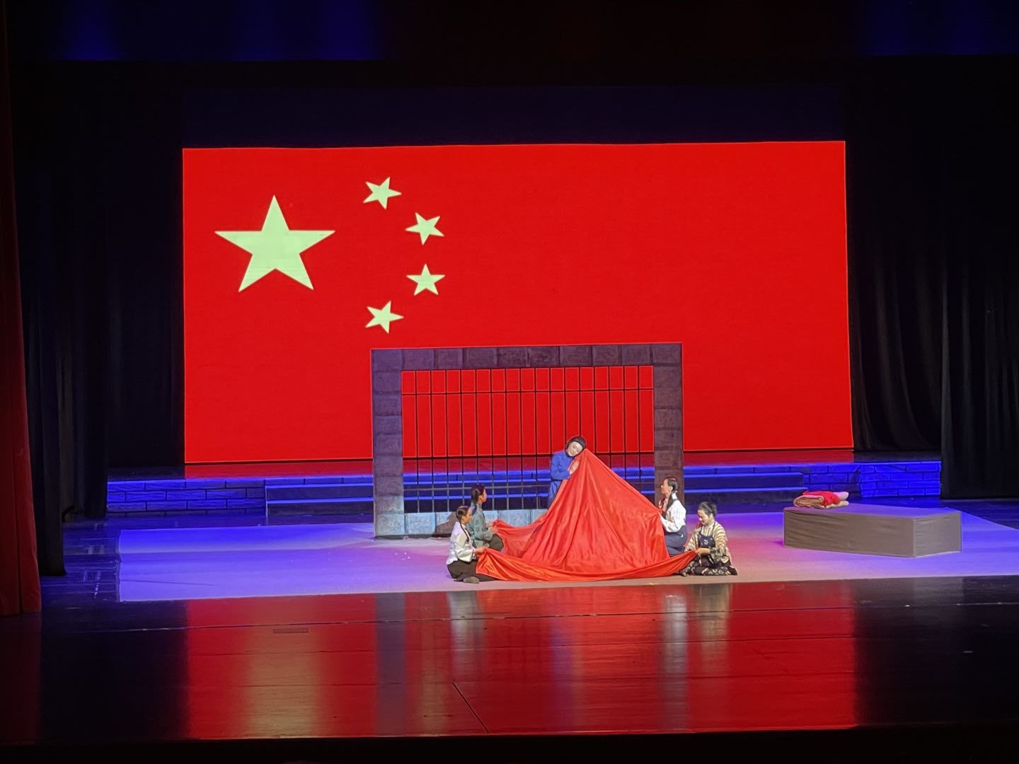 红霞染红了天边,红岩上屹立着满面笑容的江姐,她像一株灿烂的红梅,耸立在天地之间,用自己的鲜血为五星红旗增添了色彩,她伟大的形象也将永远铭刻在千万人民的心中。黄梅剧团精湛的演出带来心灵受到巨大震撼、精神受到再度洗礼,赢得现场观众的阵阵喝彩。