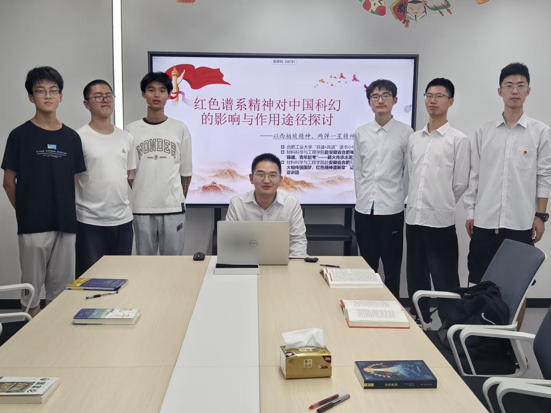 为进一步传承中国共产党红色精神谱系,探寻科幻作品与西柏坡精神、两弹一星等红色精神之间的纽带,6月29日下午,“砺材铸魂,青年赶考"薪火传承志愿宣讲团联合校“书海撷英,墨香盈袖”读书小组于合肥工业大学翡翠湖校区四号楼学生社区开展了红色精神谱系对中国科幻作品影响——以西柏坡精神、两弹一星精神为例”的读书沙龙活动。
