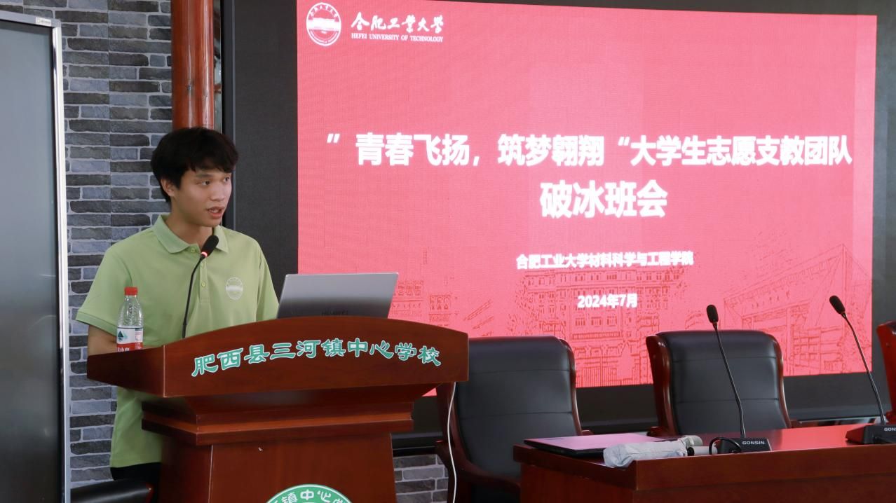 为合力推动乡村教育振兴,缓解城乡“第二课堂”教育不平衡问题,满足农村少先队员对科学、艺术等社团的需求,丰富乡村小学生课后延时服务内容,探索大学生对接小学生暑期支教新模式,7月8日上午,肥西县三河镇中心学校举办合肥工业大学“青春飞扬,逐梦翱翔”大学生志愿支教团队支教活动启动仪式。