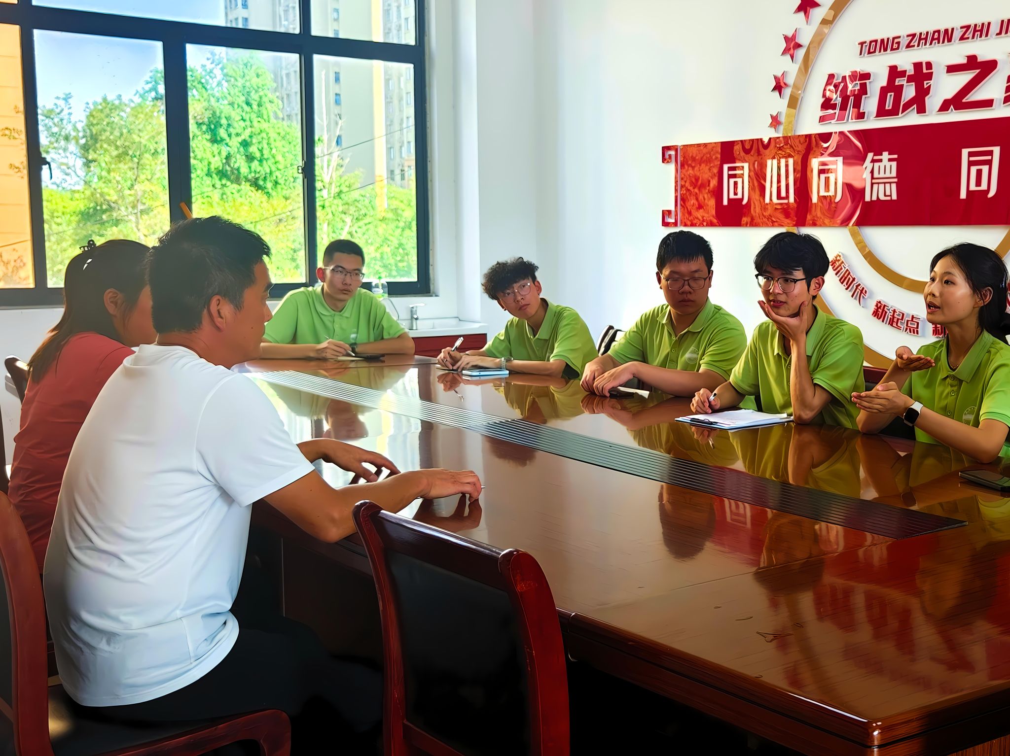 在与社区工作人员交流中,工作人员详细介绍了历年来瑶岗社区针对渡江战役推出的主题宣传活动,尤其是渡江战役胜利75周年举行的一系列宣传活动再次将渡江战役精神“送”进社区。社区工作人员还热情地向团队成员们描绘了未来几年瑶岗社区如何进一步弘扬渡江战役精神,让每一位社区居民受到红色爱国情怀的熏陶。