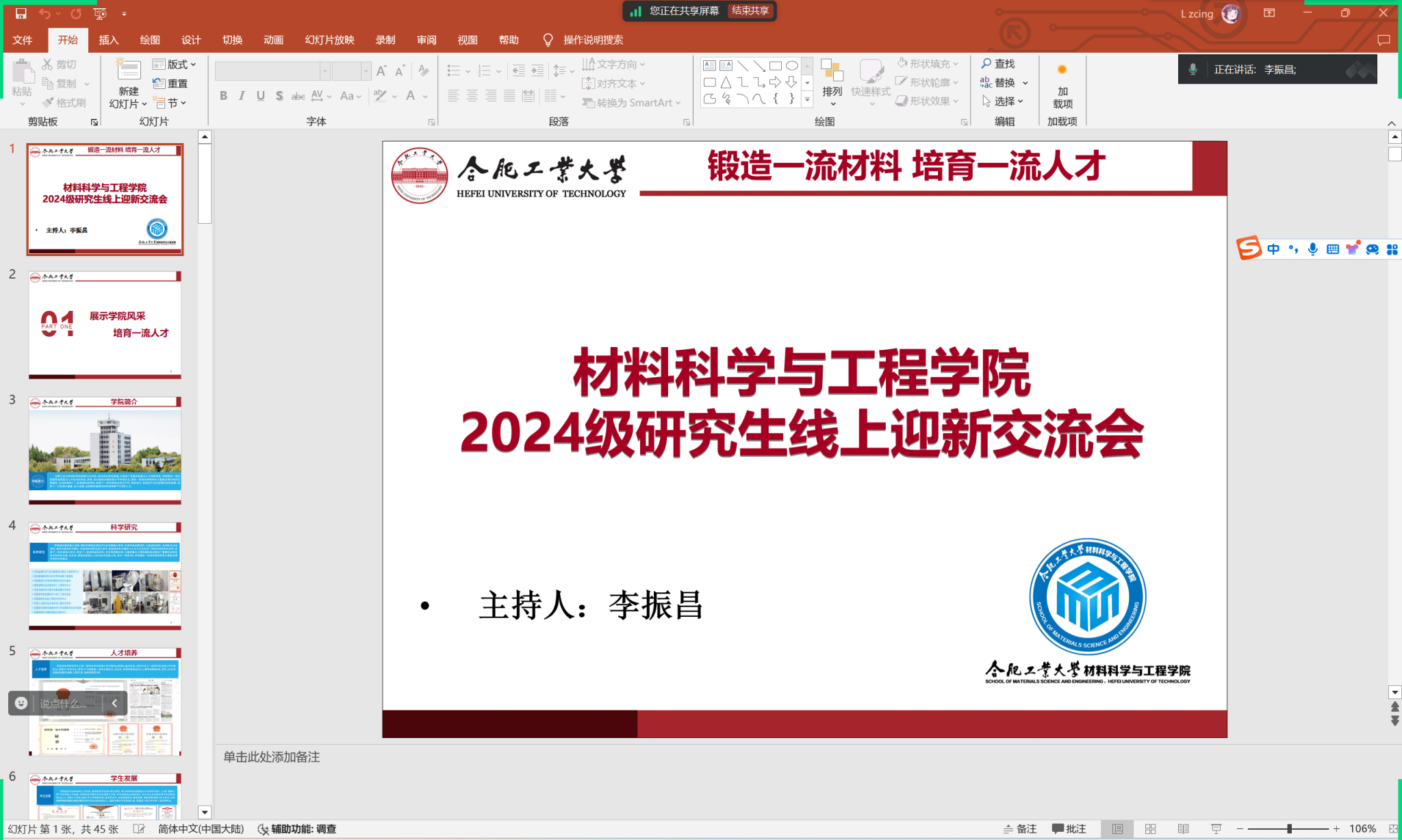 本次线上迎新交流会上,主讲人针对新生实际情况,围绕学院简介、报到流程、心灵共鸣、反诈防骗、研会介绍五个部分的内容开展。会议首先介绍学院科研基地、人才培养的等基本情况,为新生展示材料学院风采。讲解报到环节和学校生活,使新生对报道的各项流程有了基本了解,熟悉诸如水、电、邮等生活日常事务。在心理健康和反诈防骗方面,主讲人结合实际案例向同学们提出了一些建议,提醒同学们保护好个人权益。作为研究生会的一员,主讲人为新生介绍了材料学院研究生会,并欢迎同学的加入。此外,会议还设置了答疑环节,解答新生同学的疑惑,方便新生的校园生活,为后续的线下迎新活动做好铺垫。