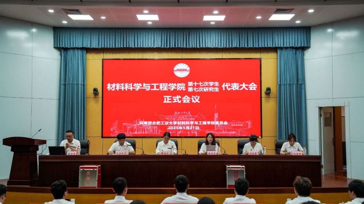 5月21日下午,材料科学与工程学院第十七次学生代表大会暨第七次研究生代表大会在屯溪路校区学术会议中心大报告厅顺利召开。学院相关负责人、各年级学生辅导员、学院学生会和研究生负责人和学院44名本科生学生代表和21名研究生学生代表出席了本次大会。学院学工办主任兼团委书记徐美波主持会议。