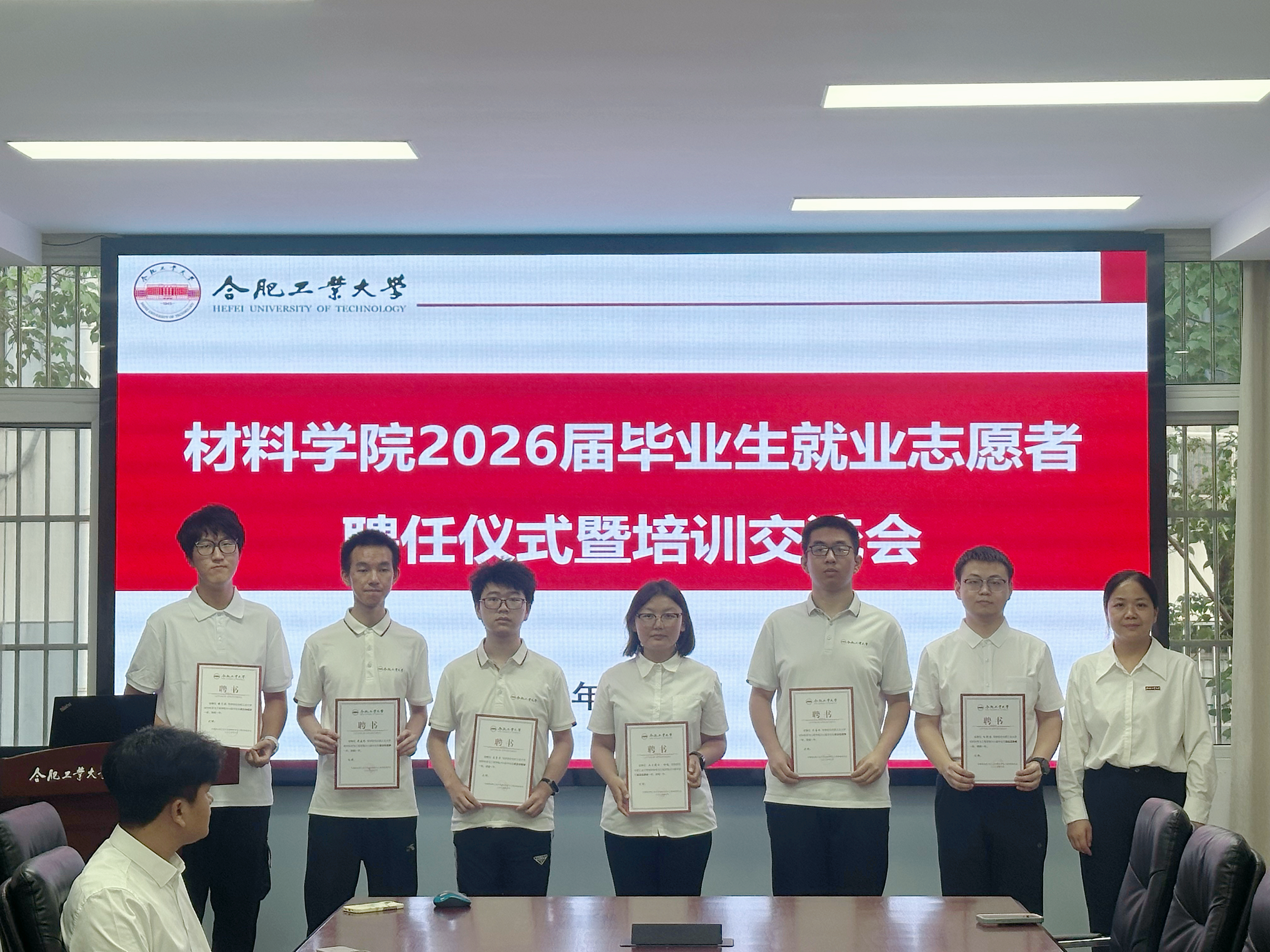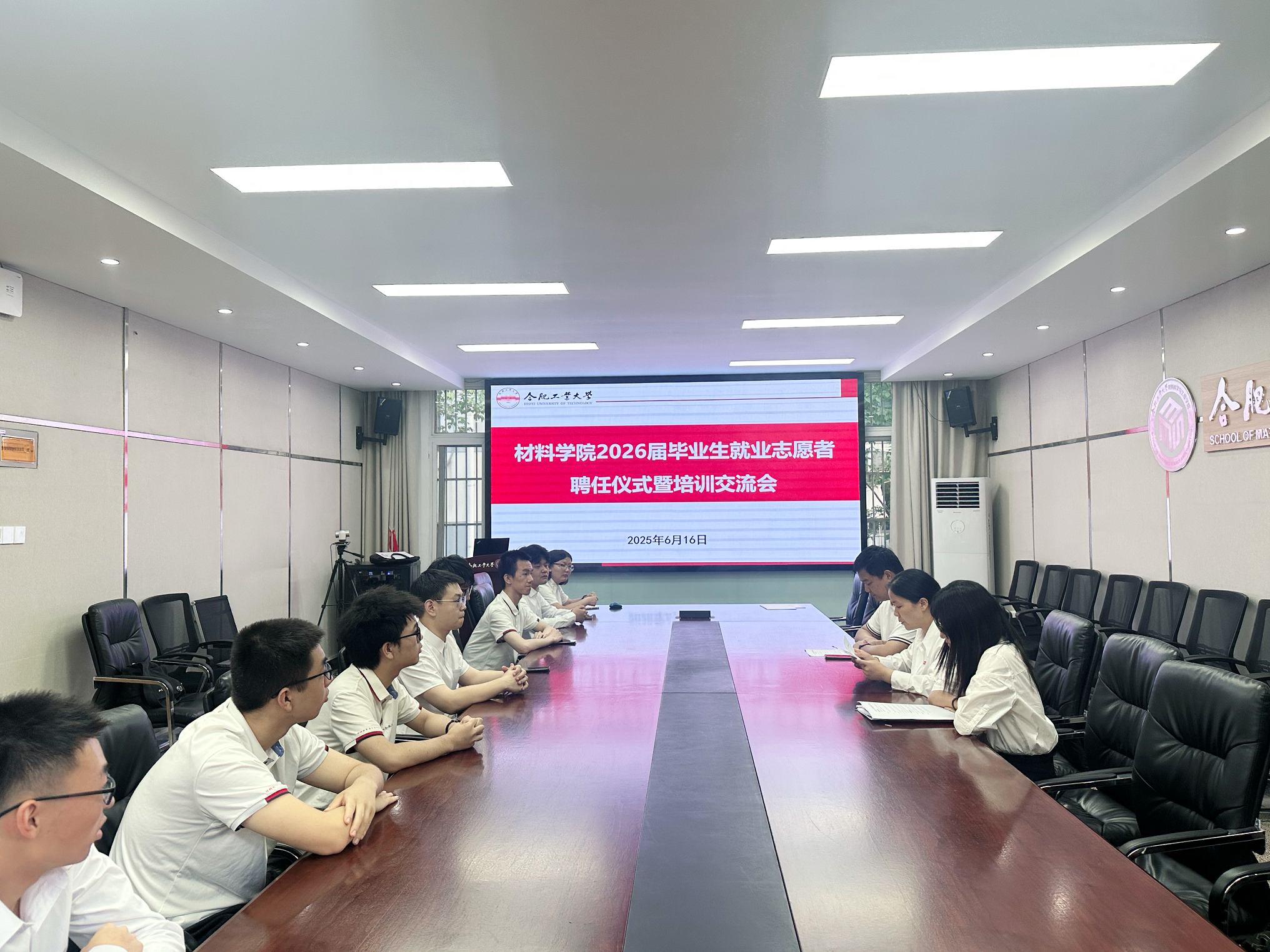 6月16日下午,6686体育在材料楼综合服务中心210举办2026届毕业生就业志愿者聘任仪式暨培训交流会。学院相关负责人、2026届毕业班辅导员和全体就业志愿者参会。