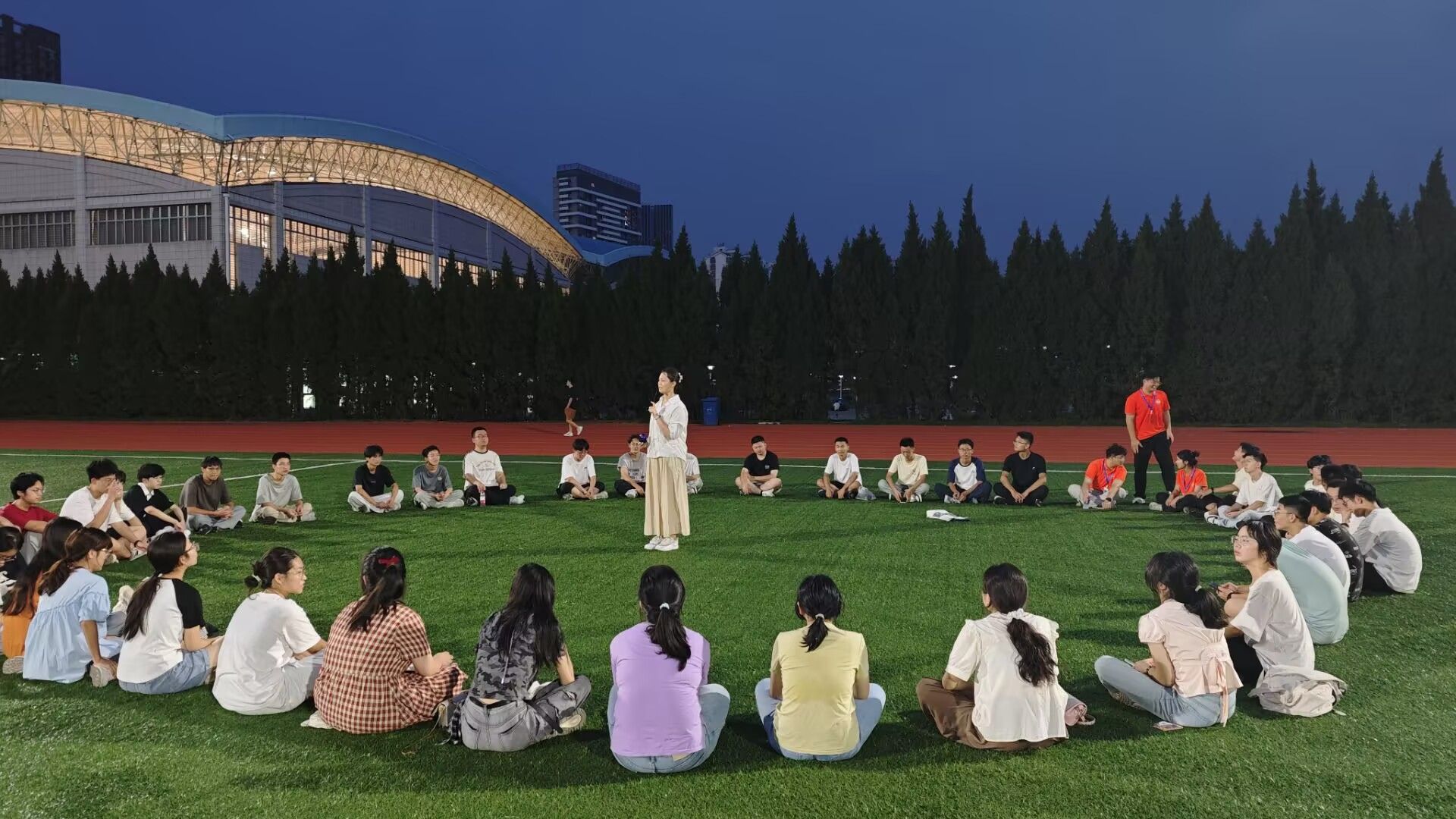 参观结束后,各班级在志愿者带领下分别前往东风广场及东西操场,以“围圈互动”形式开展趣味小游戏与才艺展示活动。新生们积极参与、主动交流,在轻松氛围中加深彼此了解,快速融入班集体。活动尾声,针对新生提出的大学学习规划、生活适应等问题,志愿者结合自身经验耐心解答,提供实用建议。整场活动在欢声笑语中圆满落幕。