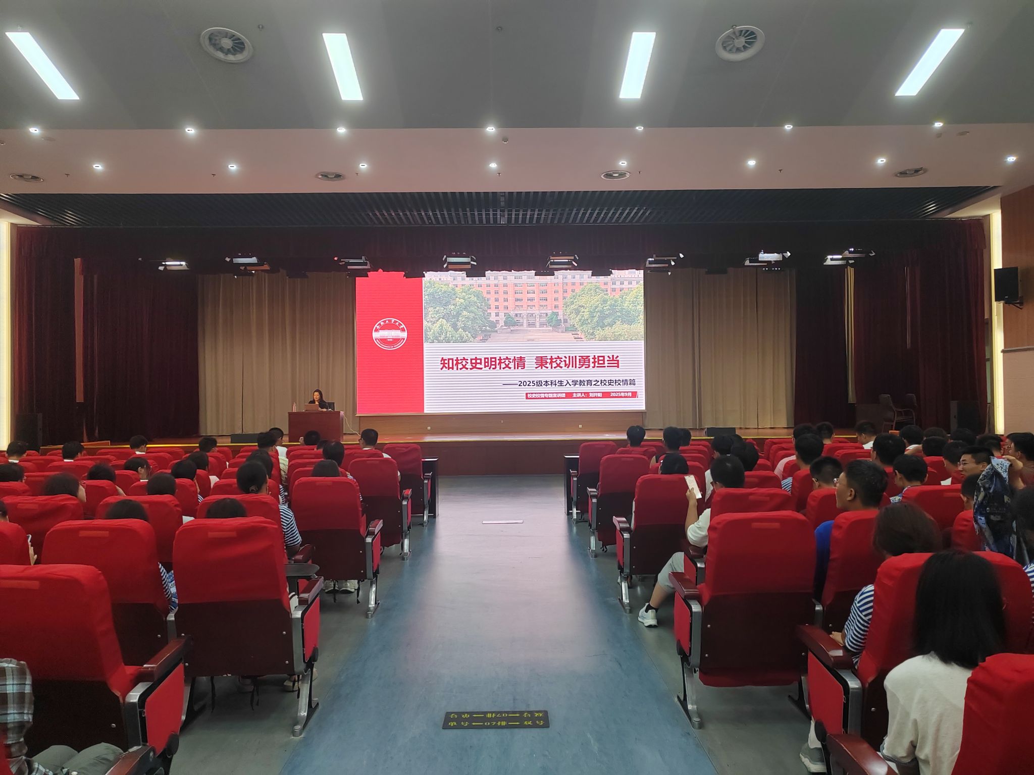 9月11日晚,6686体育在翡翠科教楼二楼大报告厅以“知校史明校情,秉校训勇担当”为主题开展校史校情宣传报告会。材料学院全体2025级新生参加本次活动。