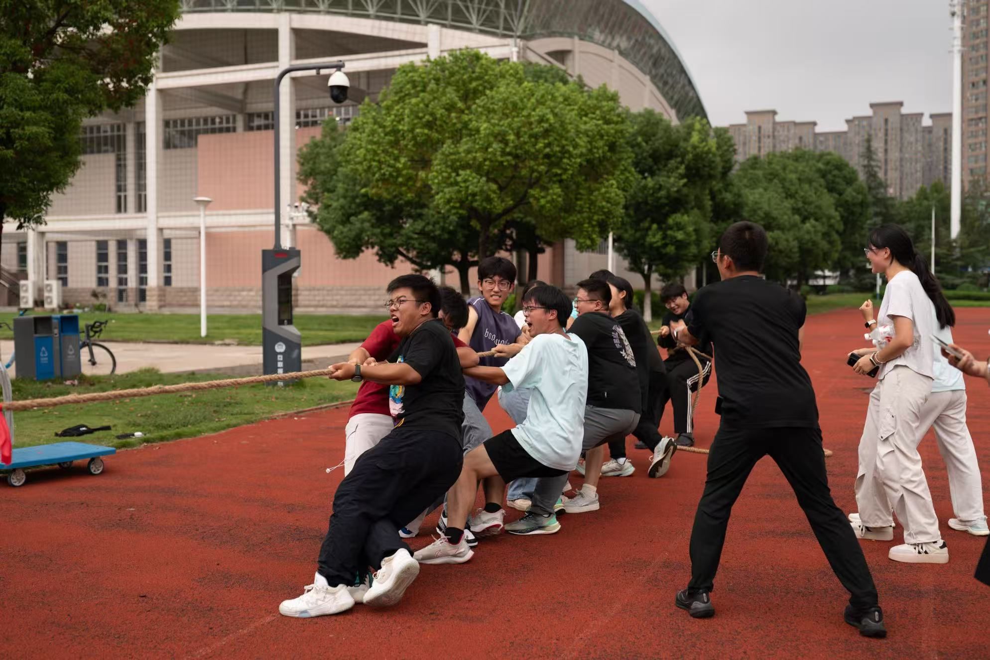 本次运动会分为田径与趣味两大板块。上午,田径运动会在风雨操场进行,共设置100米、800米、2000米、4×100米接力、跳远、铅球等11个竞技项目,运动员们在赛场展开激烈角逐,展现出青春活力风采。下午,趣味运动会在东操场举办,心心相印,集体跳绳赛,力拔山河,灵蛇觅踪四项团体项目有序开展,各班级队员凝心聚力、默契配合,为集体荣誉而奋力拼搏。此外,活动创新性采用“班级加分制”,综合两大板块表现,最终评选出了三个“群星闪耀·活力之巅”优秀班级并授予荣誉证书。