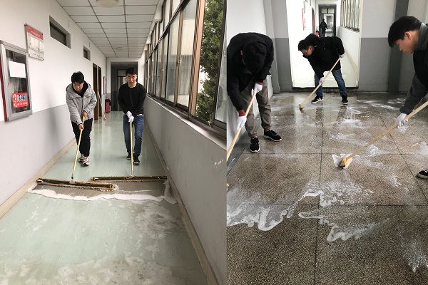 各研究生党支部以楼层为作业单元施行分区包干,对材料楼主楼、南附楼、北附楼各楼层公共区域进行了“地毯式”的打扫,对厕所、楼梯、走道以及各卫生死角进行了全面深度清洁。党员们有的拿着水桶,有的拿着拖把,有的拿着刷子,分布在材料楼的各个角落,你用扫把扫,我用拖把拖,分工合作、齐心协力,劳动场面热火朝天。经过党员同志们的共同努力,材料楼焕然一新,学习工作环境明显改善,得到了广大师生的一致好评。