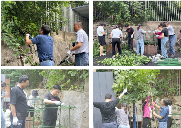 此次活动主要对材料学院综合服务中心外围绿化带进行花圃维护、杂草处理、修剪树枝等。活动中,党员同志们伏下身子、撸起袖子,认真搭建花架、精心修剪花草、清除杂草。经过大家的辛苦劳动,原来杂乱无章的绿化变得整洁,周边环境焕然一新。活动过程中,党员同志们纷纷表示要以此次党员活动日为契机,爱护校园,美化工作环境,为创建美丽校园贡献自己的力量。