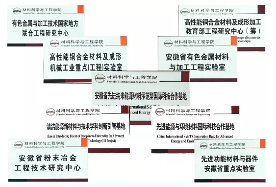 学院建有一批具有鲜明特色与重要支撑作用的科研基地,涵盖有色金属与加工技术国家地方联合工程研究中心、高性能铜合金材料及成形加工教育部工程研究中心、国家清洁能源新材料与技术学科创新引智基地(“111计划”)、安徽省首批数字化精密铸造制造业创新中心等。