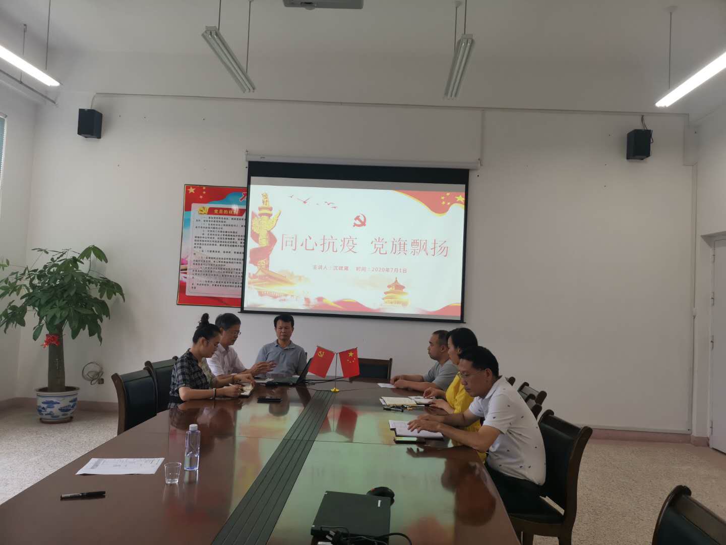 在迎来中国共产党成立99周年之际,2020年7月1日,我们支部召开“同心抗疫,党旗飘扬”主题党课,大家一起分享抗疫故事,感悟初心使命。
