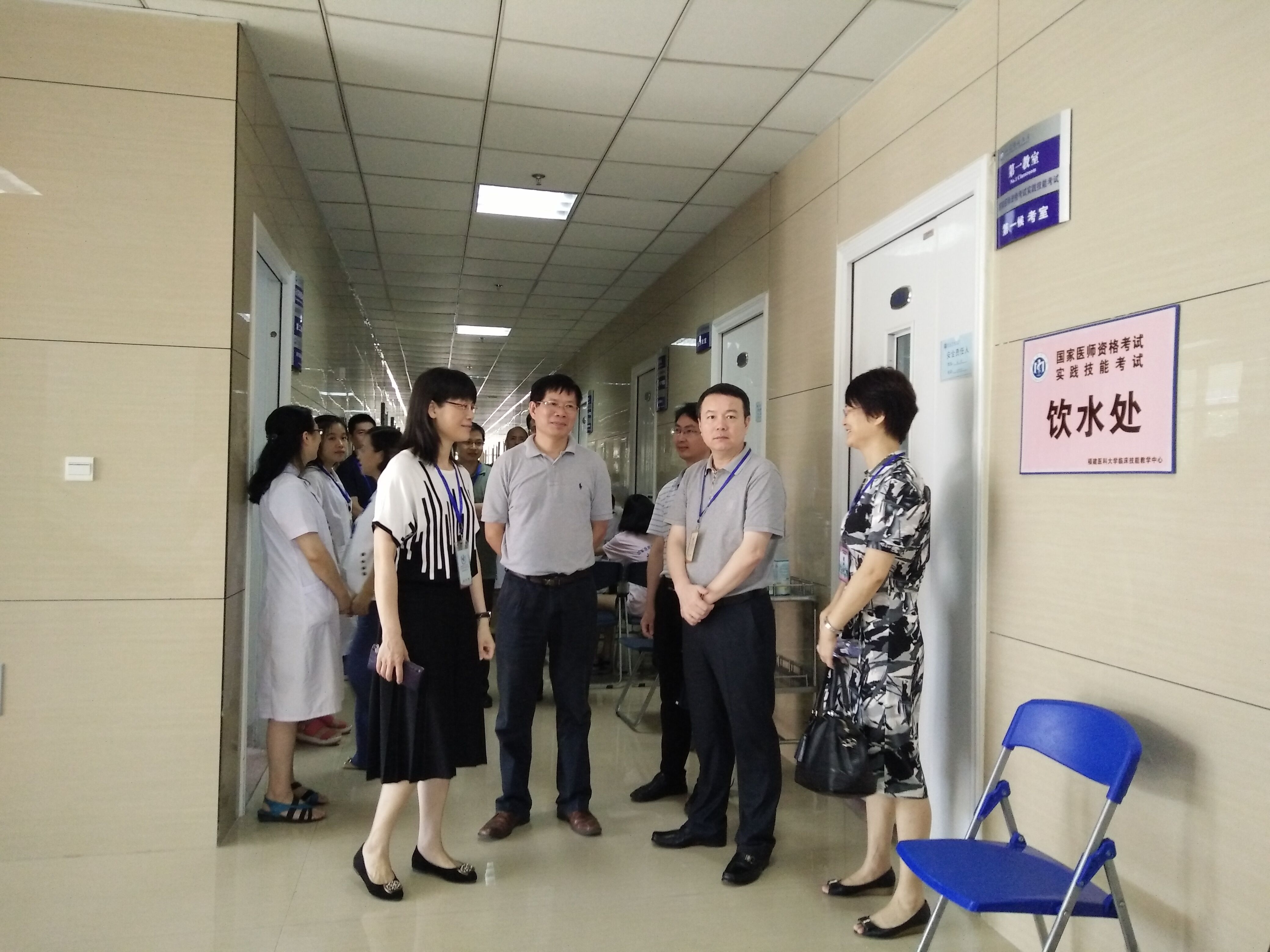 2016年7月7日,省卫计委陈晓春副主任陪同国家卫计委派驻福建省考区的巡考人员李樯处长、王凤珍主任等一行莅临我校,巡视医师资格实践技能考试考场,对我校医师资格实践技能考试工作进行指导,校党委书记张天明会见了巡视组一行,听取了临床技能教学中心执行医师资格考试的工作情况汇报,学校分管副校长黄爱民,校办公室和临床技能教学中心负责人,以及省、市卫计委相关单位有关人员参加了汇报会。