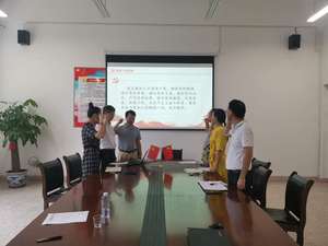 最后,所有党员面对党旗,重温入党誓词,坚定共产党员的心中信仰。