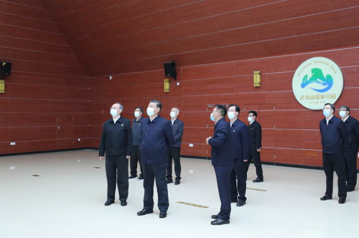 武夷山国家公园是首批国家公园体制试点之一。22日下午,习近平来到公园智慧管理中心,察看智慧管理平台运行情况。该中心综合运用智能化技术,实现了对公园“天地空”全方位、全天候监测管理,提升了生态保护能力。习近平对生态文明建设高度重视,在福建工作期间就推动了长汀水土流失治理、木兰溪防洪工程等重大生态保护工程,并于2000年推动福建率先在全国探索生态省建设。经过长期努力,福建生态文明建设取得了积极成效。习近平指出,建立以国家公园为主体的自然保护地体系,目的就是按照山水林田湖草是一个生命共同体的理念,保持自然生态系统的原真性和完整性,保护生物多样性。要坚持生态保护第一,统筹保护和发展,有序推进生态移民,适度发展生态旅游,实现生态保护、绿色发展、民生改善相统一。
