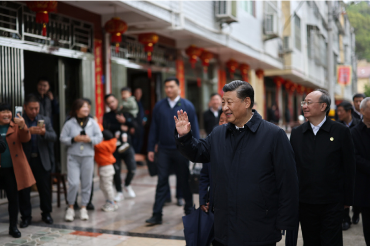322日至25日,中共中央总书记、国家主席、中央军委主席习近平在福建考察。这是23日下午,习近平在三明沙县夏茂镇俞邦村考察时,向村民挥手致意。新华社记者 王晔 摄