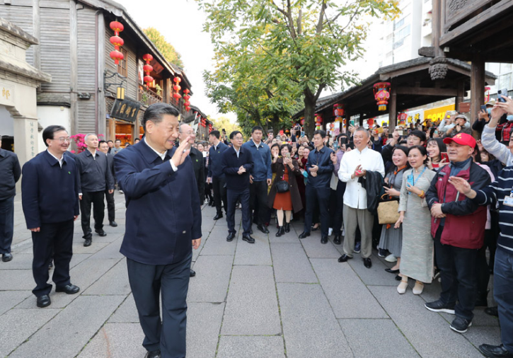 322日至25日,中共中央总书记、国家主席、中央军委主席习近平在福建考察。这是24日下午,习近平在福州三坊七巷历史文化街区考察时,向游客和市民招手致意。新华社记者 鞠鹏 摄