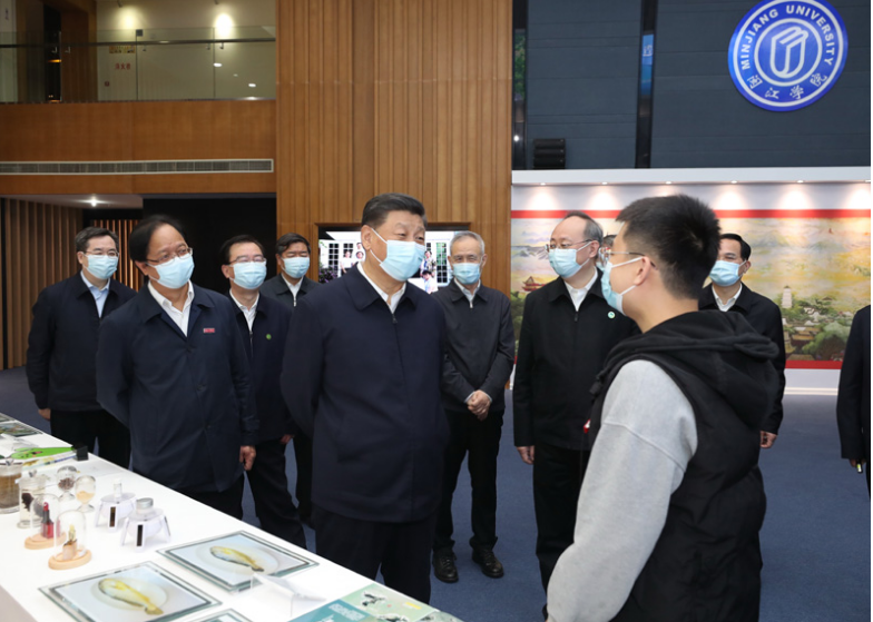 25日上午,习近平来到闽江学院考察调研。闽江学院前身是福州师范高等专科学校和闽江职业大学。在福州工作期间,习近平曾兼任闽江职业大学校长6年时间,提出的“不求最大、但求最优、但求适应社会需要”的办学理念影响深远。201810月,习近平曾就闽江学院成立60周年致贺信。在闽江学院校史和应用型办学成果展示厅,习近平肯定学院在坚持应用型办学、深化产教融合等方面取得的成绩。习近平指出,要把立德树人作为根本任务,坚持应用技术型办学方向,适应社会需要设置专业、打好基础,培养德智体美劳全面发展的社会主义建设者和接班人。