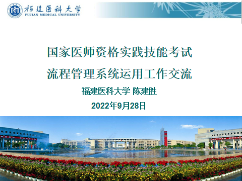 我校临床技能教学中心作为福建省基地代表,就我校2021-2022年国家医师资格考试实践技能考试流程管理系统的应用工作实施情况、工作技术保障模式的经验做大会交流。