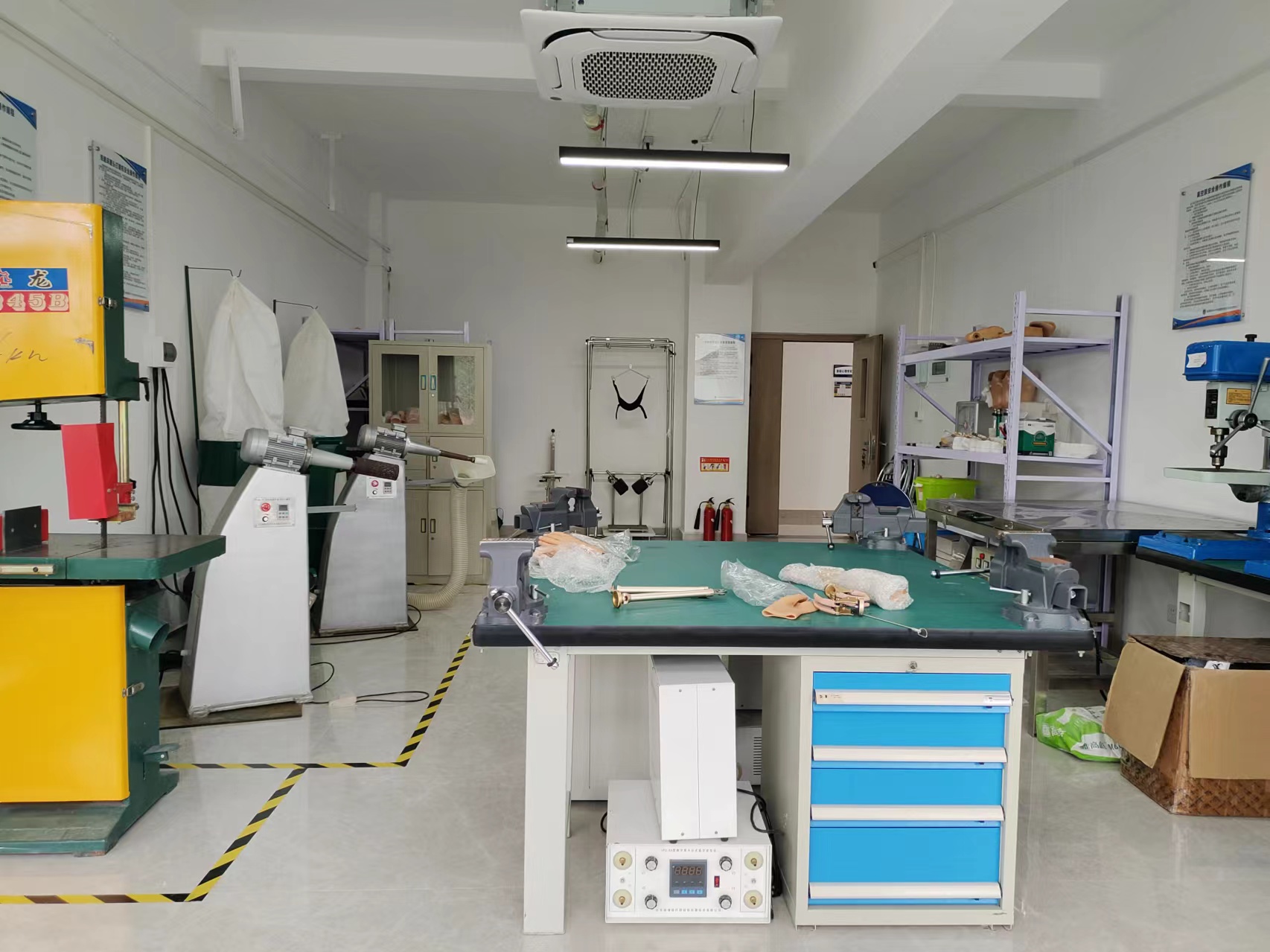 主要用于《假肢矫形器学》专业课程的假肢矫形器制作、康复辅具制作等实训教学,配备矫形器取型架、制作板材接受腔架子、石膏工作台、电动石膏锯、电动曲线锯、立式线锯、打磨机、振动锯、平板加热器、缝纫机等设备,通过实训课程操作,使学生初步掌握各类假肢、矫形器的基本制作工艺流程,构造原理及使用注意事项。