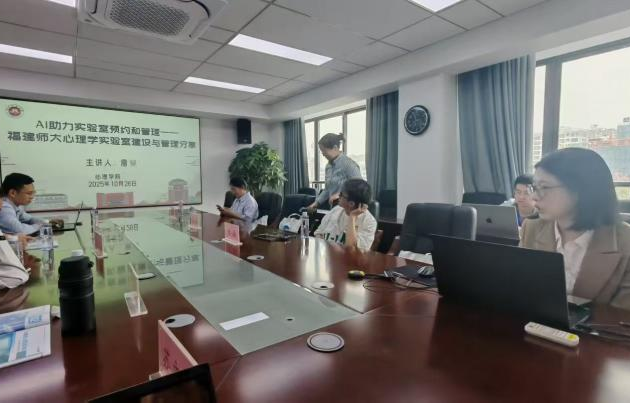 在专题分享环节,多位来自省内高校的教师代表就心理学实验室建设与管理经验进行了系统汇报。福建医科大学魏璊、杨妹香老师以“心理学实验室高效管理与创新实践——从‘管家’到‘引擎’”为题,探讨了实验室在支撑教学科研中的角色转变;福建师范大学詹鋆老师分享了“AI助力实验室预约和管理——福建师范大学心理学实验室建设与管理经验”,展示了技术赋能在实验室管理中的实际应用;福建商学院巫金根老师围绕“应用心理学专业实验室的建设:民办高校与公立高校对比”,分析了不同类型高校在实验室建设中的差异与策略;福州大学苏文亮老师则就“心理学实验室服务于教学与科研的挑战”展开探讨,提出当前实验室运行中面临的现实问题与应对思路。